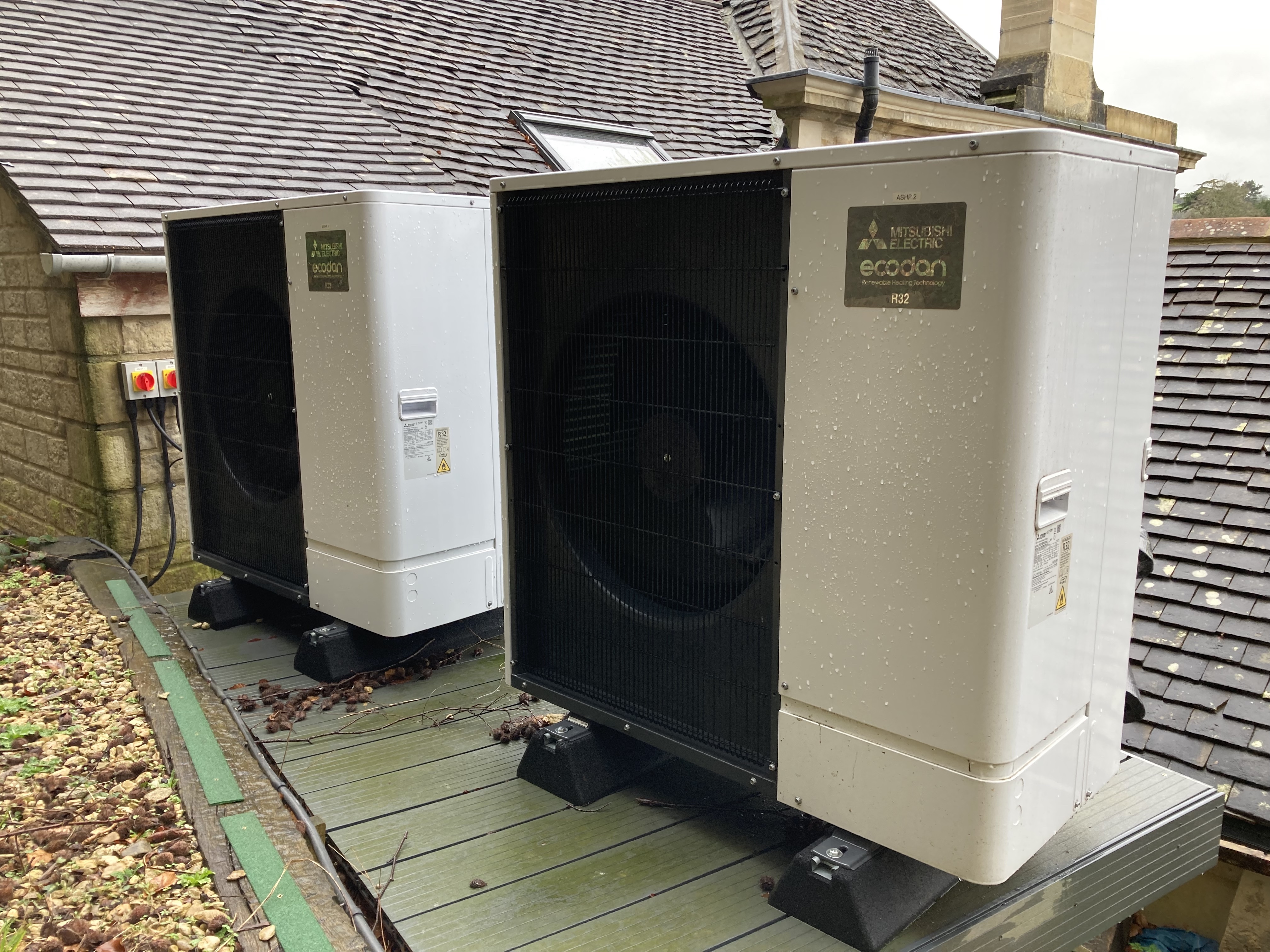 To cut a long story short, it turns out that Mitsubishi’s marketing blurb was wrong and the standard metering features didn’t work with a ‘cascade’ setup as they do for a single unit (which is the most common situation). However, Cotswold Energy Group were brilliant and remedied the situation by installing 3rd party meters to enable performance to be measured and recorded. It did mean we ended up with a slightly more complex and bespoke setup. The good news is that it all works fine and now I don’t have to worry about it – I just read the numbers off a table or graph.